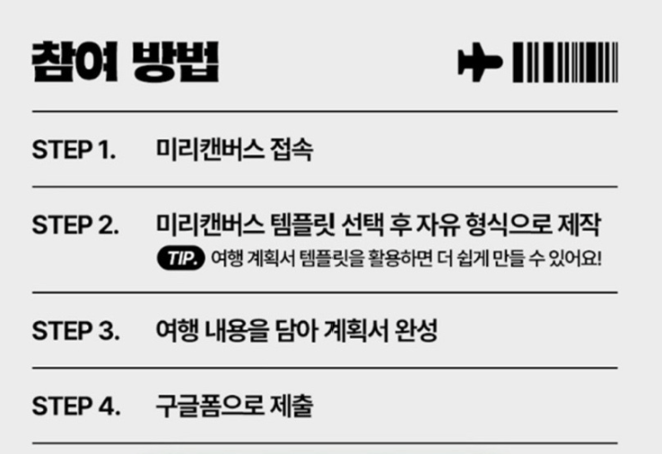 단, 미리캔버스를 이용해 여행 계획서를 작성해야 하며, 다른 툴 사용 시 자동 탈락 처리됩니다