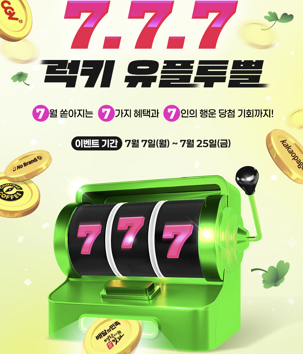 ‘7.7.7 럭키 유플투쁠’ 이벤트도 함께 진행되고 있습니다. 참여 방식은 간단하지만, 당첨 시 실질적인 상품 혜택이 제공되므로 꼭 챙기시기 바랍니다.