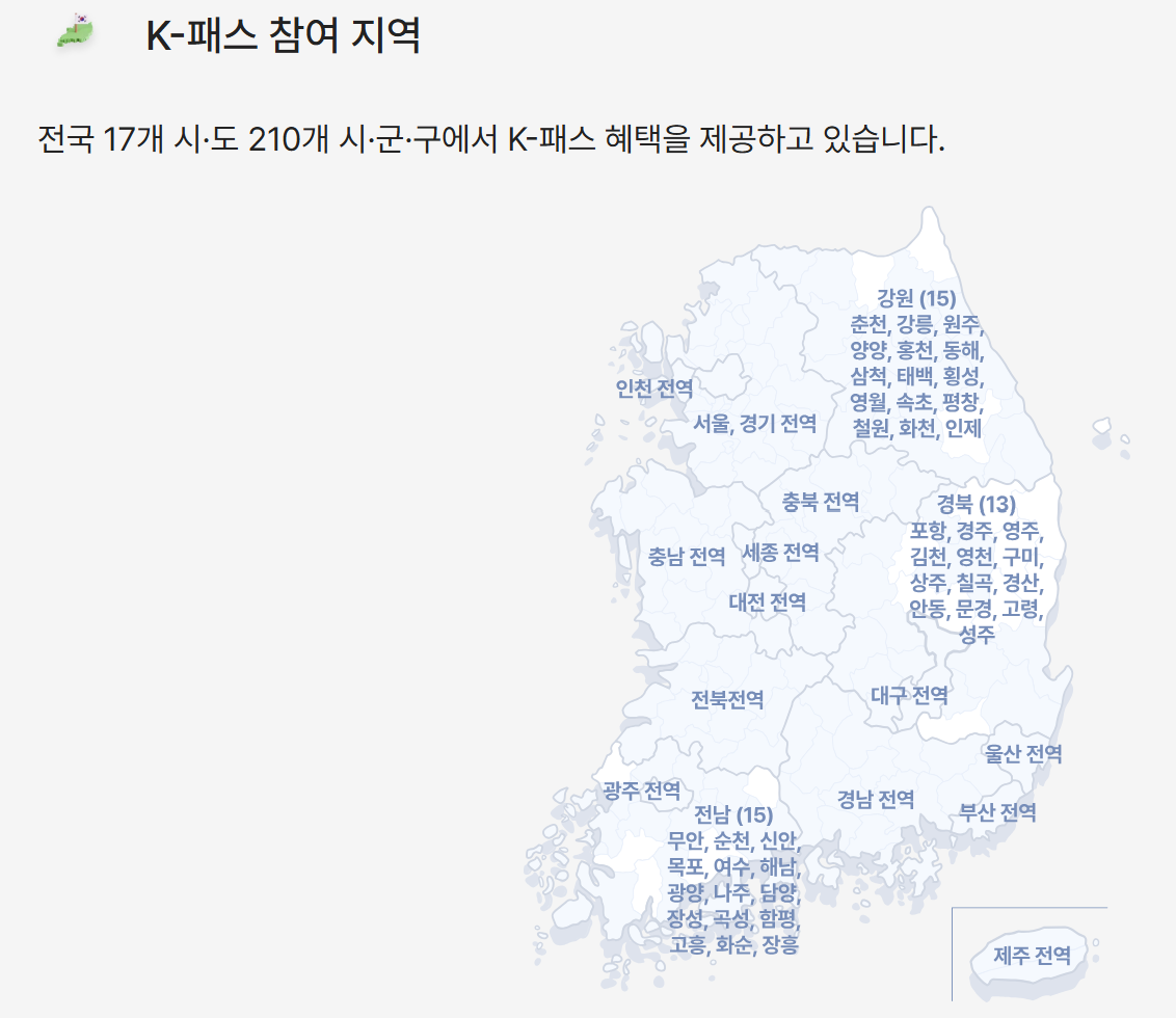 거주지: K패스 참여 지자체 주민등록 필수